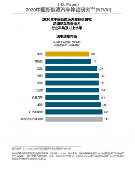 据了解,2020年度中国新能源汽车体验研究是2019年5月至2020年5月之间购车的3,267位车主的真实反馈。研究覆盖20个品牌的40款车型,数据收集工作于2020年5月至2020年7月间在28个中国主要省份进行。今年是J.D.Powe发布中国新能源汽车体验研究(NEVXI)的第二年,该研究统计和衡量了新能源汽车新车车主在2至6个月的拥车期内遇到的质量问题。2020年中国新能源汽车体验研究包含10大问题类别(配置/操控系统/仪表板、车身外观、车身内装、信息娱乐系统、座椅、驾驶体验、驾驶辅助、动力总成、电池/充电和空调)的236个问题点。(王金玉)