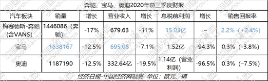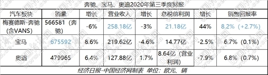 在此带动下,BBA汽车业务一改二季度的亏损、下滑,三季度各主要财务指标均呈现明显回升,息税前利润及销售回报率等更是实现由亏损转向盈利,宝马、奥迪在销量上也分别达到8.6%和6.4%的同比正增长。BBA前三季度各指标,也因此实现了一定程度的提升。