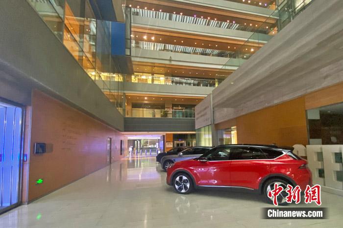 图为北汽新能源(中国蓝谷)主楼内摆放的极狐汽车 中新财经 葛成 摄