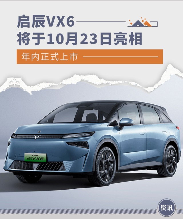 网通社资讯  启辰VX6将于10月23日亮相,有望于年内正式上市。新车基于启辰VeConcept概念车打而来的量产车型,定位“家用纯电SUV”。