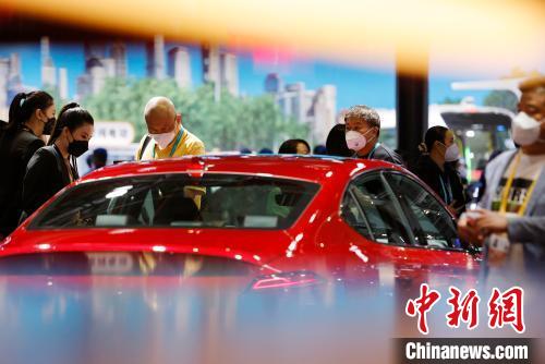 11月6日,观众在进博会汽车展区参观。第六届中国国际进口博览会于11月5日至10日在上海举行。中新社记者 田雨昊 摄