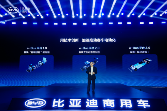 发布会上,比亚迪商用车事业部总经理田春龙表示:“这是我们对‘加速客车电动化’承诺的兑现,是对‘为用户创造更多价值’追求的回馈,是对‘绿色成就美好生活’的初心坚守。”