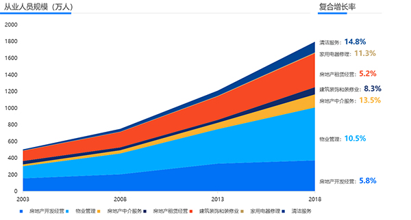 《报告》认为,需求增长和产业结构调整,居住服务业从业规模不断提升。数字经济时代,居住服务业保持高就业弹性。这是由于居住服务需求的复杂性、个性化、线下特征使得服务者难以被技术完全替代,“人机共存”是居住服务者工作常态。