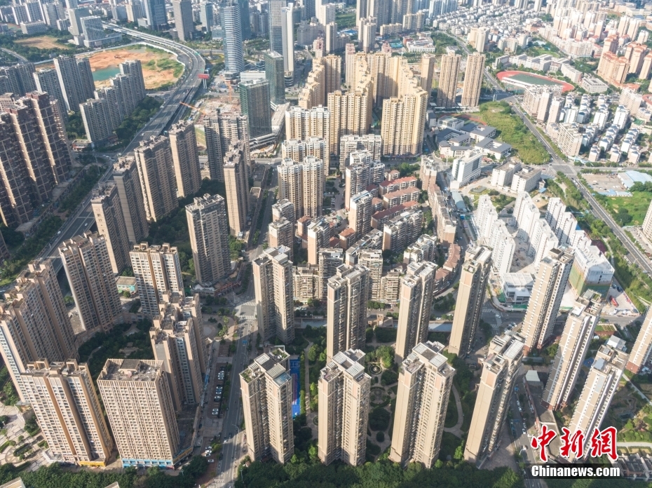 资料图为6月28日,航拍江西省赣州市的住宅小区。(无人机照片) 中新社记者 刘力鑫 摄