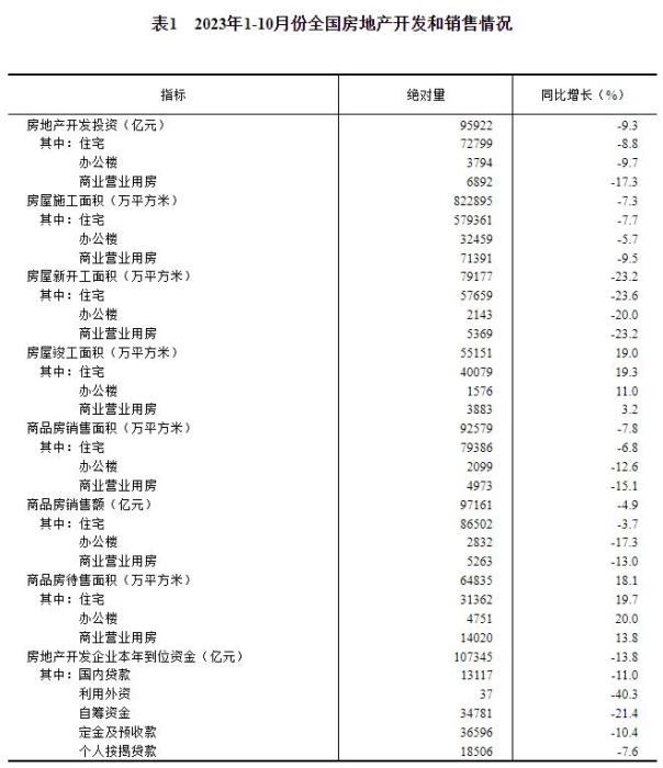 中新网11月15日电 据国家统计局网站消息,国家统计公布2023年1—10月份全国房地产市场基本情况。