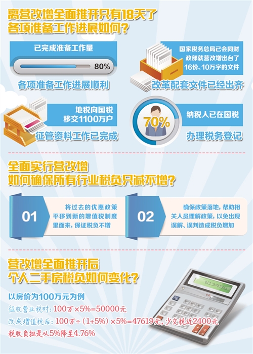 记者:营改增试点涉及范围广,改革难度高,离全面推开也只剩不到20天。当前各项准备工作进展如何?