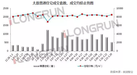 朗润解析:2016年5月第四周(5.23—5.29),本周成交面积,万柏林区排名第一,主力成交项目为国投赞城、万科金域华府、万科蓝山;小店区排名跌落第二,均价在9,336元/㎡,主要因星河湾成交带动均价上涨;杏花岭区和尖草坪区本周表现较差。