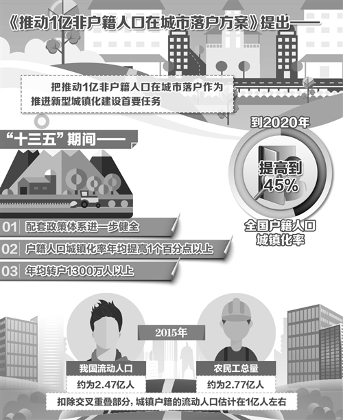 如何推动1亿左右农业转移人口和其他常住人口等非户籍人口在城市落户,使有能力在城镇稳定就业和生活的农业转移人口举家进城落户,是我国推进新型城镇化面临的迫切任务。不久前,国务院办公厅印发了《推动1亿非户籍人口在城市落户方案》(以下简称《方案》)。