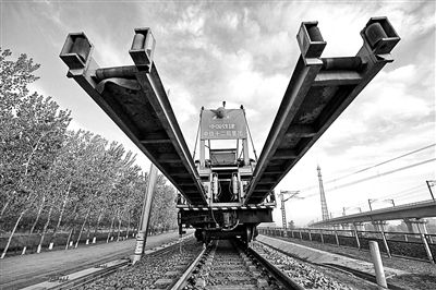 4月15日,中铁十二局集团的建设者操作机械在京雄城际铁路李营段施工。当日,北京至雄安城际铁路开始铺轨 供图/新华社
