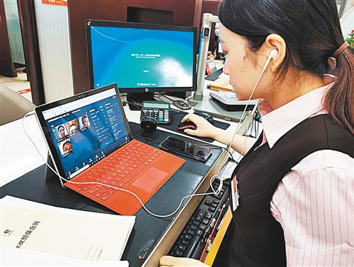 图为招商银行杭州分行客户经理正在使用线上核签室核实客户身份信息。(受访者供图)