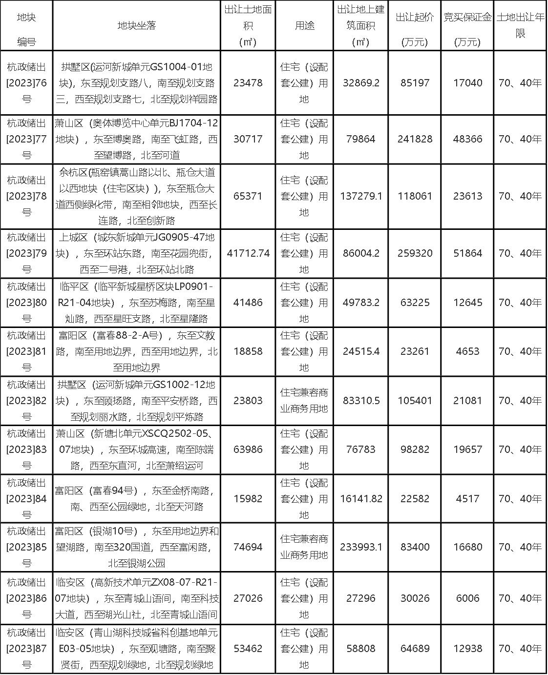 从地块区域看,主要分布于主城四区3宗、萧山区2宗、余杭区1宗、临平区1宗、富阳区3宗和临安区2宗。