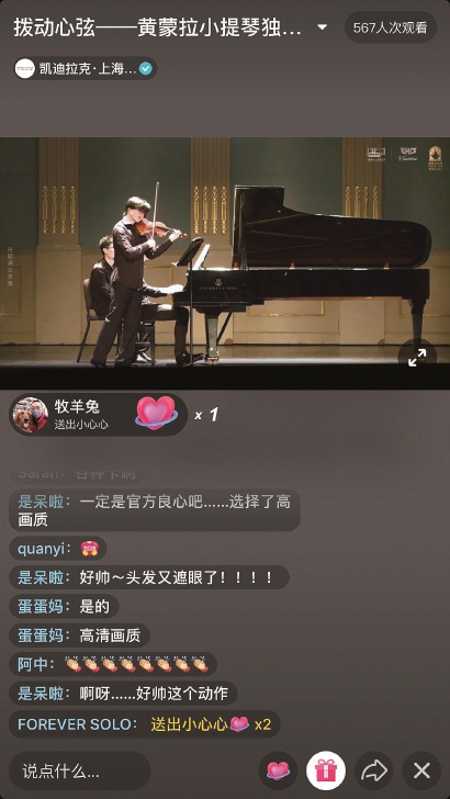 当然,也有潜水于芸芸众生里曾亲临现场的朋友,隔着屏幕回温小提琴家黄蒙拉与钢琴家薛颖佳演奏贝多芬《A大调第9小提琴与钢琴奏鸣曲“克鲁采”》Op.47、贝里奥《芭蕾情景》Op.100和拉威尔《茨冈》等曲目,往日情景再现,让人怀恋。