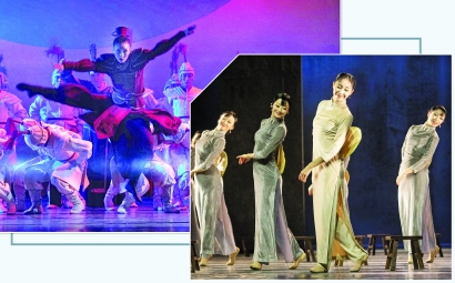 舞剧《永不消逝的电波》(以下简称《电波》)中,兰芬身着旗袍,轻摇蒲扇,舞起曼妙的《晨光曲》;《花木兰》里,女将军卸下戎装再执铜镜,用《铜镜舞》表达对“美”的天然盼望;《杜甫》中的《丽人行》尽显盛唐雍容华贵,还原诗中的“态浓意远淑且真,肌理细腻骨肉匀”。