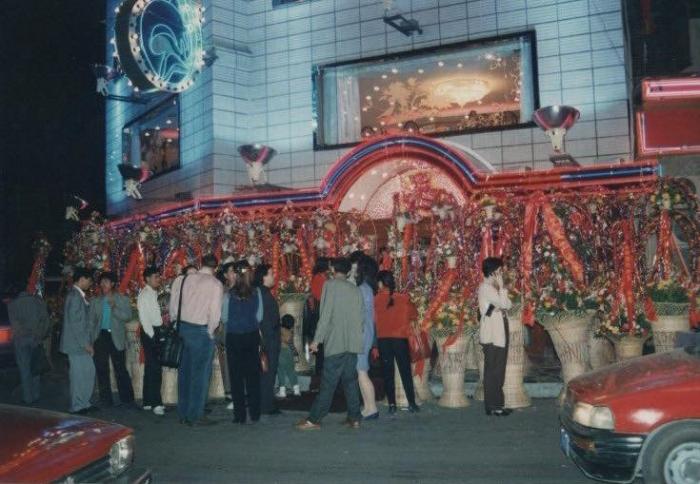 电视剧《繁花》开播后,不少上海观众在朋友圈晒旧照,回忆20世纪90年代黄河路的繁华景象。图为1992年10月,位于黄河路的“笠笠酒家”开业的场景。 受访者供图