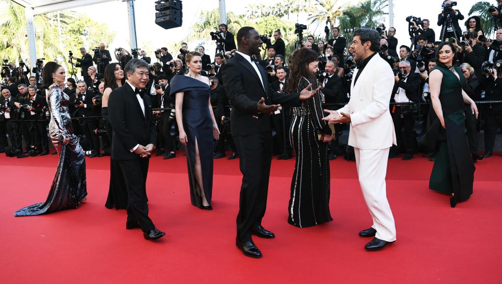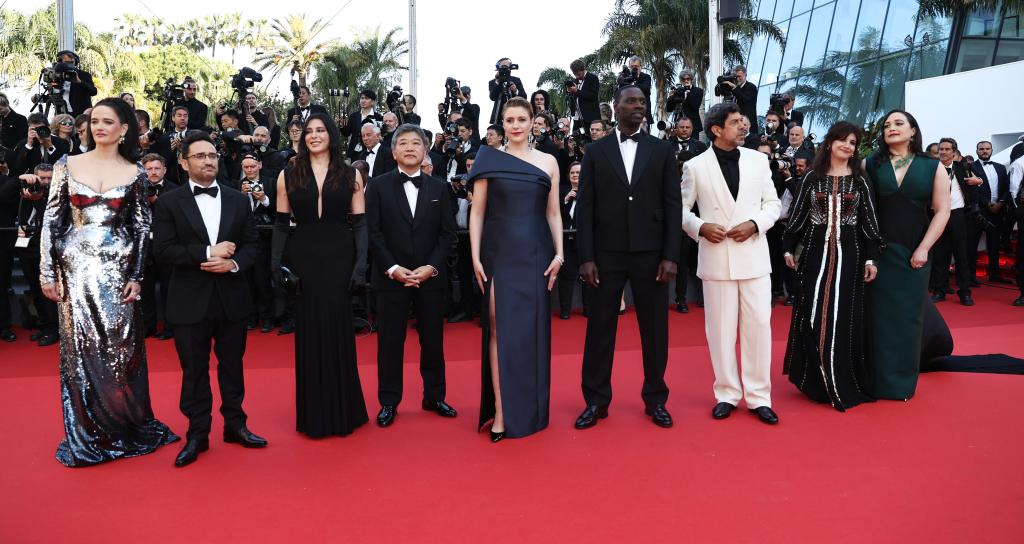 5月25日,在法国南部城市戛纳举行的第77届戛纳电影节上,主竞赛单元评委抵达闭幕式红毯。新华社记者 高静 摄