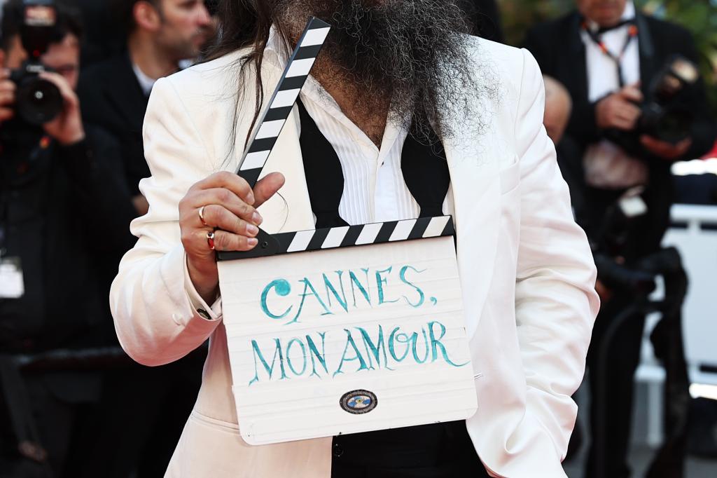 5月25日,在法国南部城市戛纳举行的第77届戛纳电影节上,一名嘉宾抵达闭幕式红毯。新华社记者 高静 摄