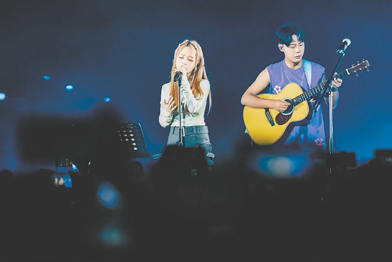 最热门的《呼吸决定》收录在Fine乐团2015年的第一张专辑里。2017年前后,在斗鱼、虎牙等初代直播平台刚流行时,这首歌就成了直播间的热歌,后来席卷各大直播平台,《创造营》等选秀、偶像综艺也开始选Fine乐团的歌翻唱和表演。在注重流量的时代,Fine乐团的“数据”早已相当可观,但他们二人依旧低调,直到今年才开始参加一些音乐属性强的综艺。“可能是我们的音乐比较适合在这些平台传播吧。”刘冠南说,作为一个乐团,他们很长一段时间里连经纪人、团队都没有,更别说去做歌曲的宣传,创作与表演是他们唯一的生活重心。