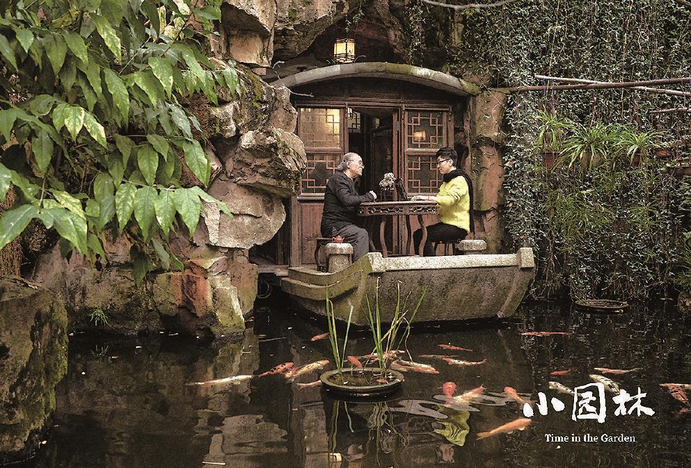 《小园林》表现了苏州三位私家园林造园者的生活日常,影像构建犹如电影中造园者叠山理水的过程,造园与拍摄的双重“建造”呈现出对应的互文式“诗意建造”。上图为纪录电影《小园林》剧照。