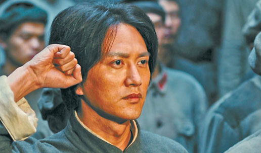 剧作第一次还原了毛泽东如何确定中国工农红军的旗帜,当何长工拿着设计好的中国工农红军的旗帜来到毛泽东住所,此时全屋只有一盏昏黄的煤油灯,整面红色军旗铺展在桌子中央,成为视觉中心,画面显得肃穆、庄重。只见毛泽东沉思片刻,将旗帜中的斧头略作修改,可谓画龙点睛。在紧张的战争前,这一段相对安静的画面,宛如暴风雨前的平静,亦点出了“革命需要旗帜引领”。