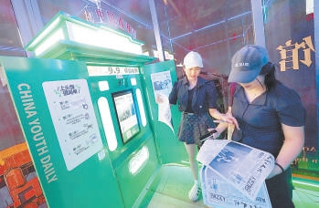 “时光照相馆”自拍体验区里,观众可生成以自拍照为头版新闻的“人艺之友报”。北京日报记者 方非摄