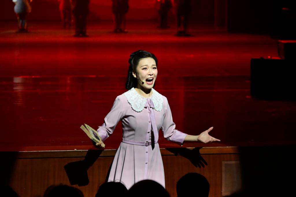 8月2日晚,音乐剧《致青春》在乌鲁木齐文化中心大剧院完成谢幕演出。图为《致青春》剧照。(演出方供图) 舞台上,苗族群舞《苗女出嫁》的红伞如红云翻涌,芭蕾舞与小合唱交叠,人物命运与悲欢有了更强烈的画面感。