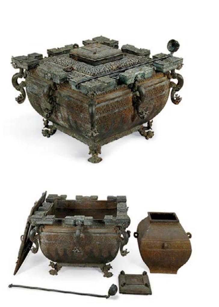 影片中用于冰酒的铜鉴缶正是出自于湖北省博物馆馆藏曾侯乙铜鉴缶,它由外部的鉴、鉴内置的缶组成,是中国最早的“冰箱”。在鉴的内部放上缶,中间的空隙放上冰块,可在祭祀和宴飨时冰镇酒。“以古为鉴”“击缶而歌”等成语亦由此衍生而来。