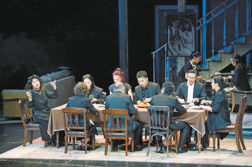 与此同时,白荟饰演的马蒂姨妈,张培、原雨饰演的二女儿艾薇、小女儿凯伦等角色,也都以鲜明扎实的塑造融入了这幅色彩激烈、碰撞尖锐的家庭图卷。陈小艺直言,《小郡之秋》相当难排、难演的一点在于,要让这部“纯粹讲述屋子里一家人”的外国戏踏踏实实落地,“既不能太提着、有话剧腔,也不能像拍电视剧一样,否则台下的观众看不见。”《小郡之秋》没有进行刻意的本土化,但在台词的语气、节奏等细节上,“我们达成共识,这出家庭戏要采用中国式的生活化表达,让观众有强烈的代入感。”陈小艺说。