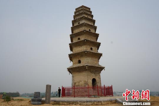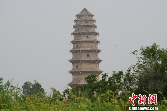 图为8月3日,刚修缮完工的凤台寺塔,尽显古朴雄伟。 董飞 摄