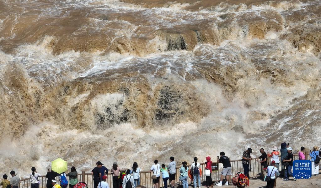 暑期,众多游客来到位于陕西宜川县和山西吉县交界处的黄河壶口瀑布游览,领略壶口瀑布美景。