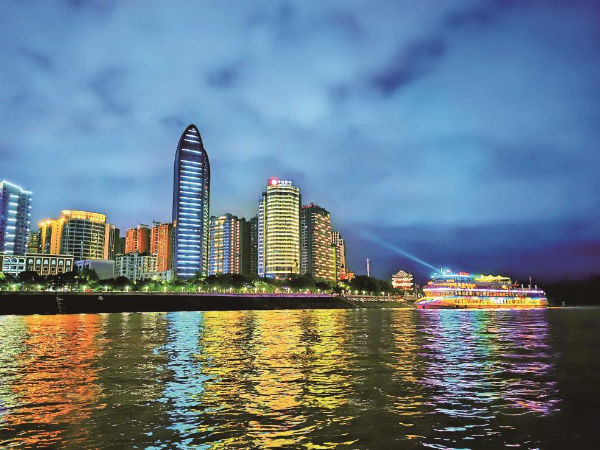长江夜游轮船及城市灯光秀