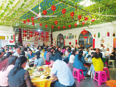 “上午游览完太行洪谷和红色体验基地,中午专程慕名到他家吃铜火锅。你看这儿,吃火锅连风扇都不用开,而且食材地道,味道正宗,吃着过瘾。”带全家来南阳村游玩的晋城市民赵先生一边大快朵颐,一边美滋滋地说。