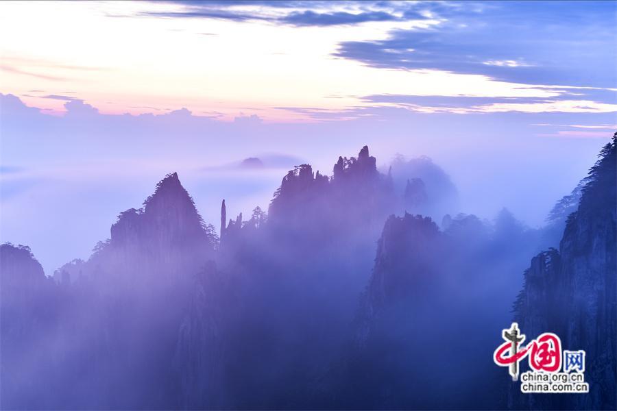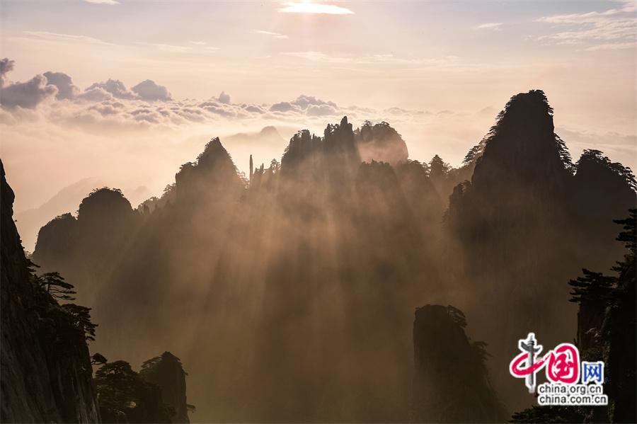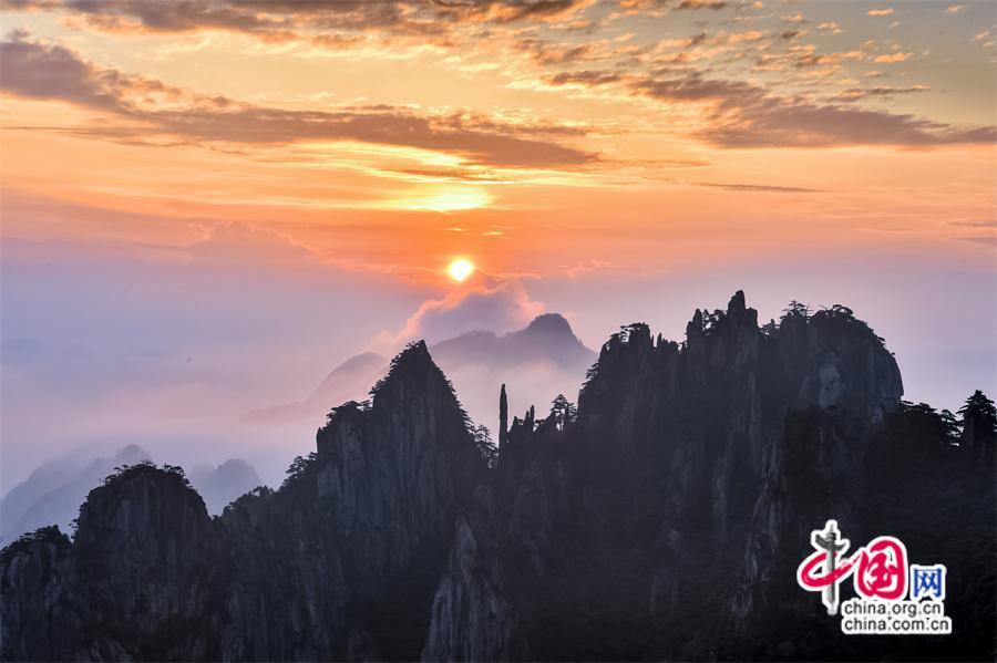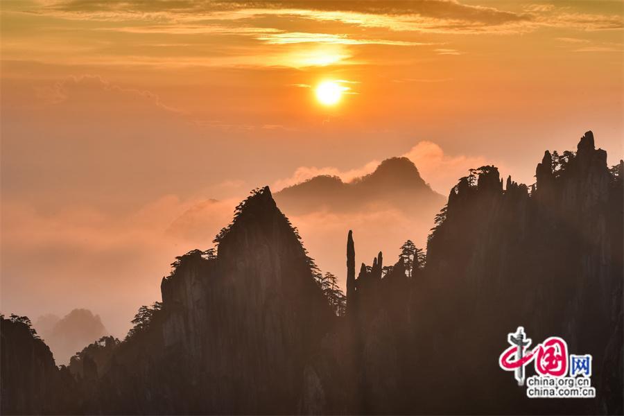 【点睛】“立秋”日安徽黄山惊现红日、朝霞、云海同框,日出时分一轮红日在满天红霞中冉冉升起,云海在阳光里变幻着色彩,人们仿佛置身于一幅引人入胜的风景画中。