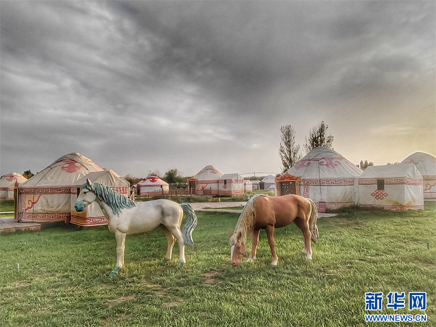 天山脚下秋风起,塞外美景换新颜。漫步新疆博湖县乌兰再格森乡,花海中的乡村映入眼帘:河畅水清,天蓝岸美。移步博斯腾湖大河口景区,牛羊马等造型的雕塑栩栩如生,与蒙古包相互映衬,尽显草原文化的独特魅力……一幅秋日乡村的美丽画卷,正徐徐展开。