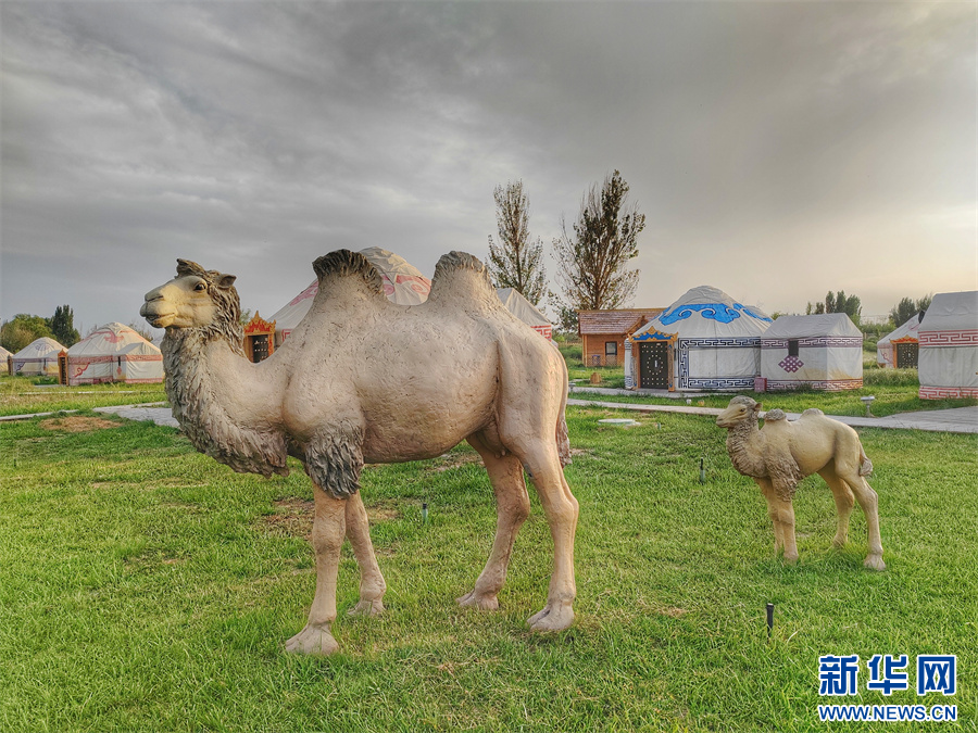 造型独特的雕塑与蒙古包相互映衬,尽显草原文化魅力。