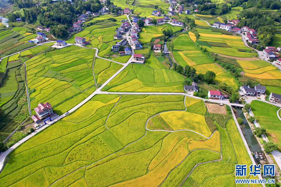鹤峰县走马镇千金村的葛稻共生基地稻谷飘香。新华网发 申玉洁 摄