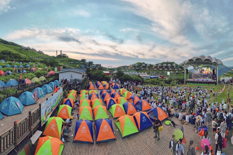 “景区深耕露营业态,打造了武功山草甸星空帐篷营地等一批露营项目,形成‘露营+演艺’‘露营+观景’‘露营+美食’等多维度体验产品,进一步激活‘露营+’文旅市场活力。”萍乡武功山风景名胜区管委会副主任王协斌说。