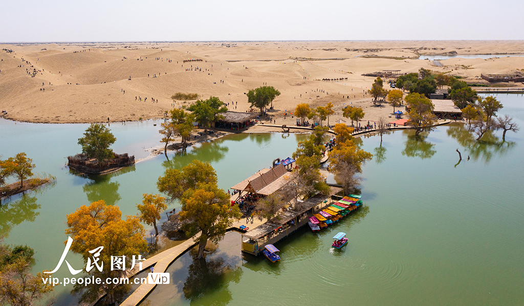 处于塔克拉玛干沙漠边缘的尉犁县罗布人村寨是一个以民俗文化、探险旅游为特色,集沙漠、胡杨、河流、湖泊于一体的旅游区。汪志鹏摄(人民图片网)