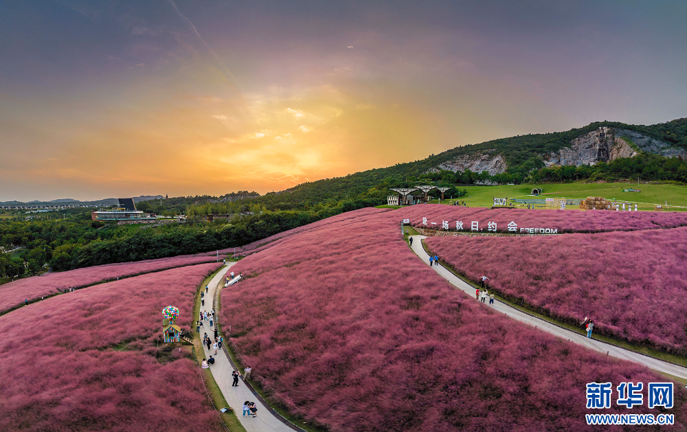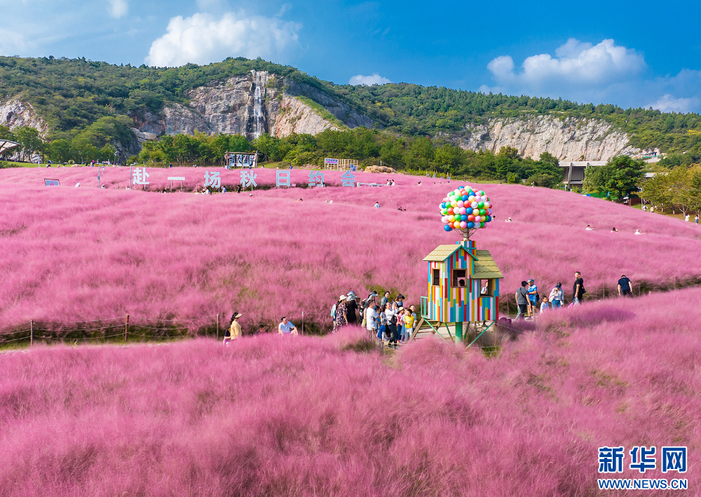 眼下,南京江宁汤山矿坑公园大片粉黛乱子草进入盛花期。一株株粉黛乱子草,聚成了粉色的“云海”,粉色的花穗曼妙轻盈、如烟似雾,吸引不少市民前来观赏,为浓浓秋意增添一份浪漫。(沙芳如 报道员:刘伟)