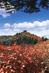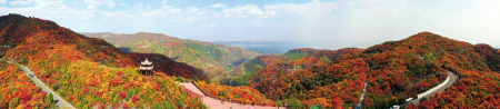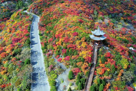 龙山、太山景区位于风光秀丽、重峦叠翠的太原西山,东临晋阳古城遗址,西接天龙山风景区,盘绕在崇山峻岭之中,是太原西山文化带的璀璨明珠,集丰富的历史遗存与优美的自然景观为一体。每年深秋,秋叶临霜而红,层林尽染,漫山红遍。闻名遐迩的“西山红叶”正逢盛季,万亩红叶流丹似火。龙山、太山红叶,是太原西山地区分布面积最大、最为集中的红叶观赏地。游客顺着山势拾级而上,山峦环抱的山坳里、沟谷中、山脊上,一团团一簇簇,或红或橘,或黄或绿,仿佛置身大自然的画盘之上。
