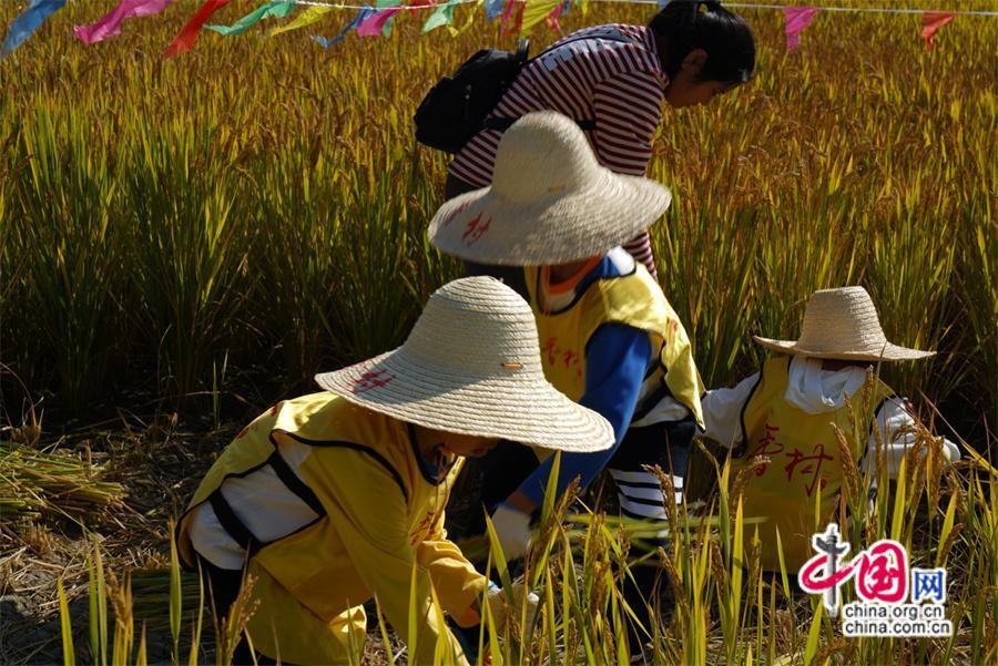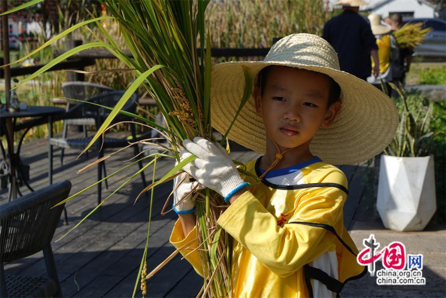 香村的管家将草帽与镰刀发放给孩子们,再由经验颇丰的伯伯示范,再到实操,一场欢乐的割稻子活动在田间展开。参与劳作,真切体会那句“粒粒皆辛苦”,在割稻子现场,也能感受到大人们也跃跃欲试,“这边,这样割,不对,不对,哎呀……我来”略显着急的“指挥”着孩子,或许,这样的场景也带给家长们重回童年无忧时光的快乐。