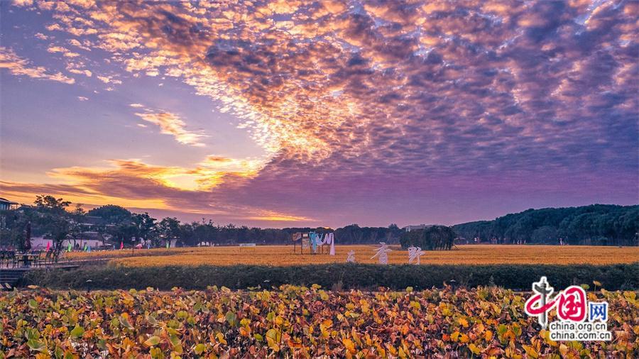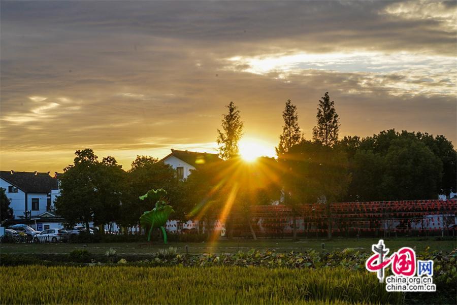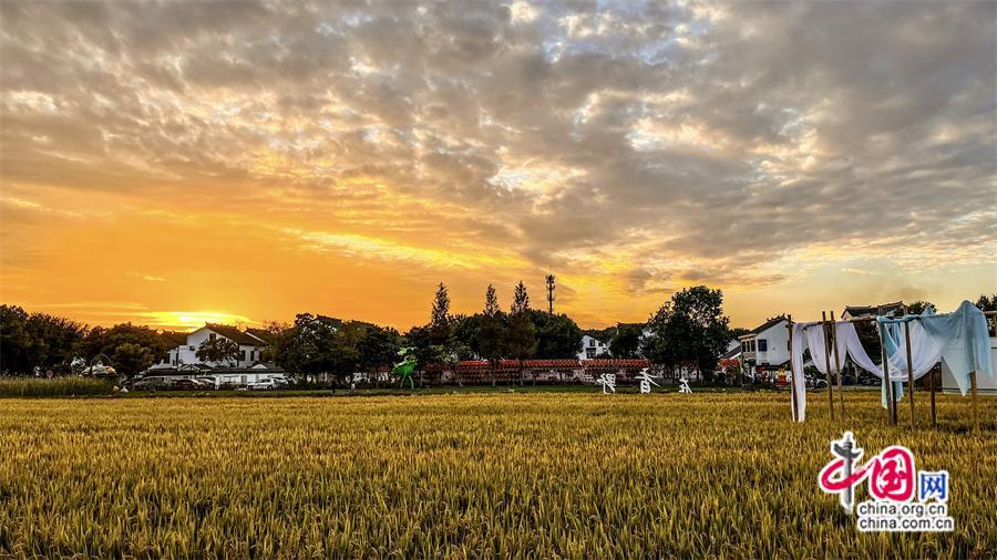 傍晚时分抵达香村,收获了一场惊艳的落日美景,云层色彩在光线折射下不断变化,忽而红如火,忽而灿如金,忽而粉如烟,再到最后一抹落日的余晖撒遍整个村庄,稻田村舍,树木小花,一切都笼罩在一片祥瑞的金光里,如梦似幻……这应是我见到过的最美江南晚霞。