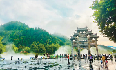 西递景区牌楼广场雨后美景。西递镇政府供图