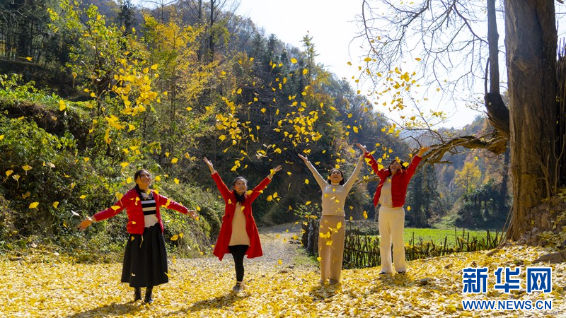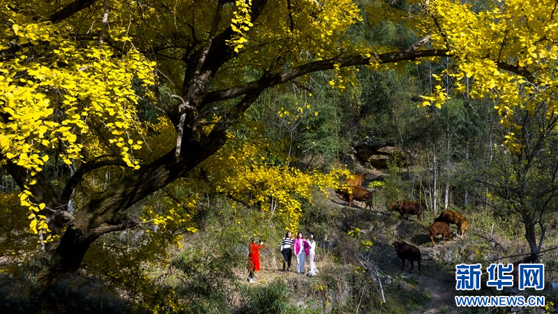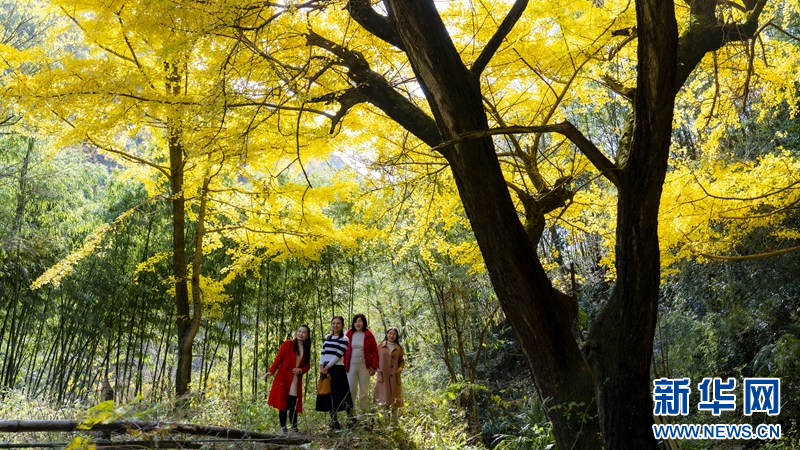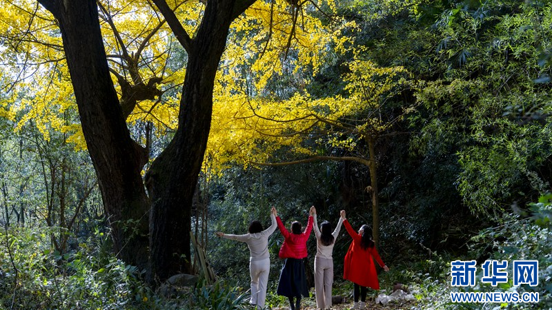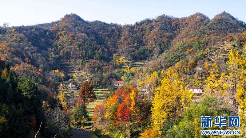初冬,金色的阳光洒在湖北省南漳县李庙镇的山林中,宛如大自然无意中打翻了调色盘,呈现出红色、金色、绿色交织的绚丽色彩,美如一幅幅画卷。(华君、 刘思)