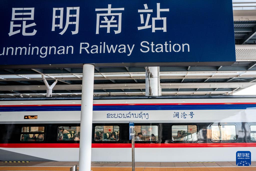 2月14日,中老铁路国际旅客列车从昆明南站发车。