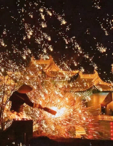 活动:来自湖南浏阳的专业烟花团队根据榆次老城环境特色,打造一场炫酷烟火电音的烟花秀,用零烟花瀑布技术,在安全的前提下为游客带来视觉与美的极致体验,将极光天幕+雪景泡泡礼花相结合,以年轻人的视角与这座百年的历史古城完美契合,迸发出新时代的活力和浪漫。今年榆次老城首次引入大型威亚表演,在电音舞台上方演员“飞”奔而来,绚烂的舞台灯光承接美轮美奂的威亚敦煌飞天,在45分钟的飞天表演中,一场传统美学和现代流行的结合悄然展开,重回千年前的敦煌。同时,老城内整体以红色为主色调,琳琅满目的春联、门神、年画、福字、横批、窗花等红色喜庆元素、布置各种具有着吉祥寓意的大型灯组供游客打卡拍照。