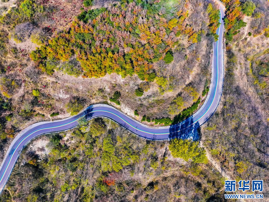 盘山公路仿佛一条飘带缠绕在山间(无人机照片)。新华网发(薄林 摄)