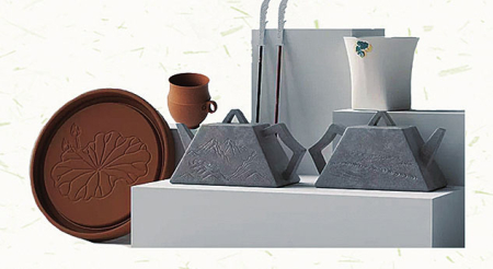 青莲壶承将莲花文化符号融入其中,体现出壶承的清廉底色,壶承材质为绛州澄泥砚,更体现出扎根三晋大地,为民务实的作风。