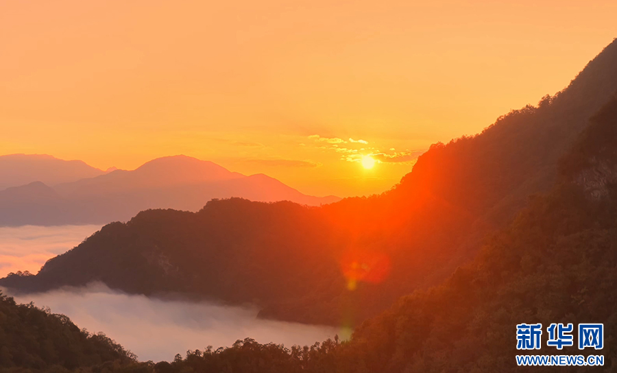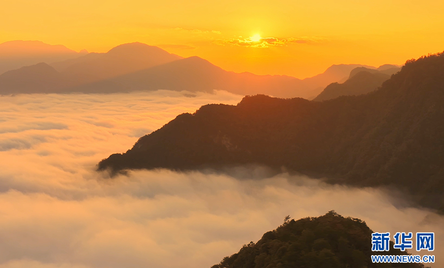 曙光初照,云海翻腾。近日,安徽省池州市石台县仙寓山景区在晨光中展现出一幅壮丽的日出云海画卷。万顷云涛在层峦叠嶂间奔涌流动,与朝霞金光交织成景,气象万千,蔚为壮观。(王帆 摄)