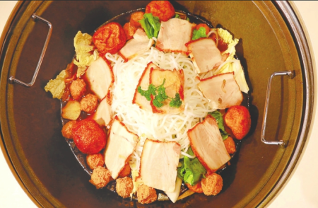 用料讲究,特色配菜都要纯手工制作。豆腐丸子、肉丸子、烧肉等食材经烹饪后,尽显治愈味道。熬制数小时的秘制高汤,搭配食客自选食材,经铁锅烩制,呈现本真风味。