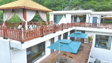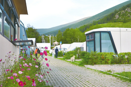 特色住宿业态则从高端到普惠多点开花,满足不同客群需求。独具匠心的设计融入自然景观,让游客在青砖灰瓦间品茶论道,感受山风的轻抚,体验“结庐在人境”的闲趣。其中,光明寺村“早种晚收”露营基地可以说是具有代表性的一处。在地方镇政府和乡村振兴战略的支持下,露营基地依托东台沟生态资源,建成28辆房车营位并配套露天电影、自助烧烤区,智能充电桩、星空观景台、生态卫生间等现代化设施,年均接待游客超2万人次,成为社交平台上的“网红打卡地”,在户外休闲旅游和特色住宿市场中建立了良好的声誉和强大的竞争力。